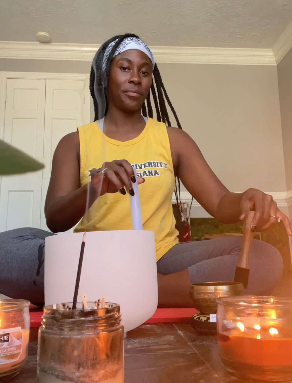 Our Founder, Ariel plays the Tibetan singing bowl and crystal singing bowl